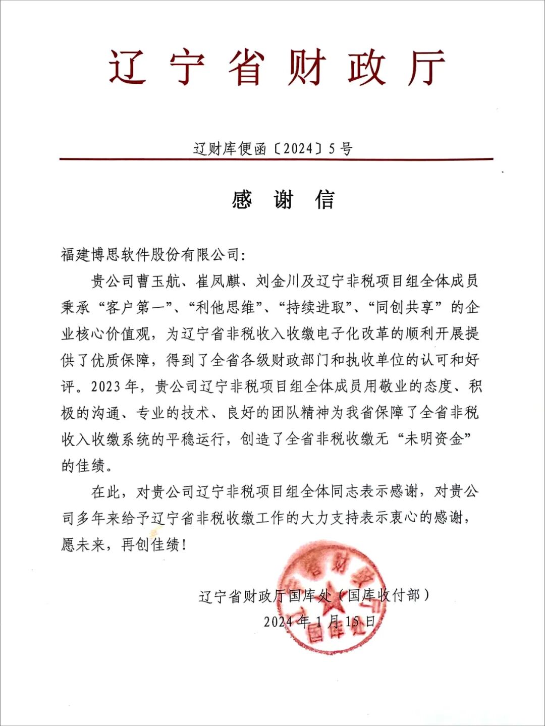为目标坚持,为客户负责,正是这样的精气神,铸就了博思辽宁分公司团队的强大战力。感谢信不仅是荣誉,更是责任。我们会珍视客户的信任,在未来的工作中,继续立足技术创新,提供专业服务,以科学的精神、进取的态度,在创新发展的道路上,不断前行!